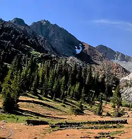 Vandever Mountain is an 11,947-foot-elevation (3,641-meter) mountain summit located in the Sierra Nevada mountain range, in Tulare County of northern California.[3] It is situated on the shared boundary of Sequoia National Park with Sequoia National Forest, four miles south of Mineral King, and 1.78 miles (2.86 km) west of Florence Peak, the nearest higher neighbor.[1] Vandever Mountain ranks as the 439th highest summit in California.[2] Topographic relief is significant as the south aspect rises 2,000 feet (610 meters) above White Chief Canyon in one mile. The summit can be reached via class 2 hiking from Farewell Gap or White Chief Canyon.