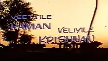Veetula Raman Veliyila Krishnan (transl. Rama at home, Krishna outdoors) is a 1983 Indian Tamil-language film, directed by Manivannan and produced by Panchu Arunachalam. The film stars Sivakumar, Radhika and Suhasini. It is a remake of the Telugu film Intlo Ramayya Veedhilo Krishnayya,[1] and was released on 12 June 1983.[2]