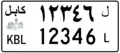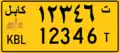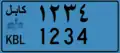However, the 5-digit code in the capital province of Kabul exhausted. Thus, on the license plates of this province, have an additional extra digit, only in Persian, located separately from the actual numerical code. In addition, two hyphens are shown at the top and the bottom of the 6th number. [1]