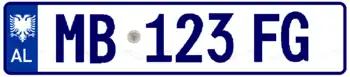Albanian Police Vehicle registration plates in Albania have blue borders and blue texts on a white background. They follow the format [MB 000 AA], where MB stands for Ministria e Brendshme which means Ministry of Interior. These plates are also issued to other subjects under the Ministry of the Interior, including the Republican Guard, which arranges transport for high-ranking members of state.