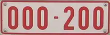 Plates issued to state officials consist of a single letter followed by one to three numbers.[1] Roughly speaking, the initial letter is either "A" for Ministers (excluding regional executives) and Ministers of State (an honorific title for distinguished politicians), or "P" for members of Parliament (including regional parliaments), or "E" for members and services of the regional governments. The president of the Belgian Chamber of Representatives has licence plate "A1" (1st citizen of the Kingdom), the president of the Belgian Senate has "A2", the prime minister has "A3", and so on.[1]