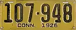 1926 | Embossed black serial on yellow plate; "CONN. 1926" centered at bottom | 123-456 | 1 to approximately 112-000 | |