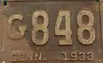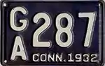 - ↑ "Old Connecticut License Plates". LeatherLicensePlates.com. Retrieved June 10, 2017.
