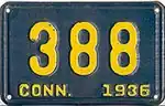 1936 | Embossed yellow serial on navy blue plate; "CONN. 1936" at bottom | 1234 | Issued in blocks by branch office | |