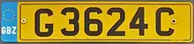 ![]() Gibraltarian regular legal standard number plate (pre-Brexit). | |