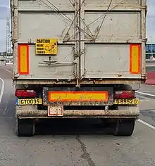 - Rear plates (yellow) may be 520 mm x 111 mm (standard) or 285 mm x 203 mm (square).