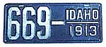 1913 Embossed white serial on blue plate; "IDAHO 1913" at right none 1234 1 to approximately 2500