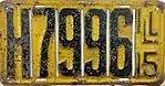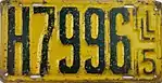 1915 | Dark blue on yellow; "ILL 15" at right | none | 12345 | 1 to 99999 | Letters H, K, P, R, T, U, X and Y used in the A1234 serial format.[53] |