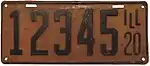 1920 | Black on orange with border line; "ILL 20" at right | none | 123456 | 1 to approximately 494000 | |