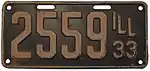 1933 | White on dark blue with border line; "ILL 33" at right | none | 1-234-567 | 1 to approximately 1-277-000 | |