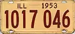 - ↑ "Illinois Auto Plates In '53 To Be Red On Buff". Chicago Tribune. May 26, 1952. p. 2.