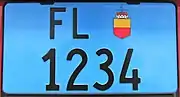 - ↑ Liechtensteinisches Landesgesetzblatt of 1996, No. 143, issued on 27 September 1996 Ordinance of 16 July 1996 on the technical requirements for road vehicles (VTS) concerning registration plates, Article 45