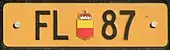 - 1920 - Liechtenstein introduced new license plates with the letters FL, followed by a coat of arms and up to five digits, issued in sequential order.[9] In 1950, a total of 472 motor vehicles were registered in Liechtenstein.[10]