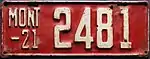 1921 | Embossed white serial on maroon plate with border line; "MONT –21" at left | none | 12345 | 1 to approximately 57000 | |