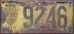 1919 Black serial on yellow flat metal plate; "NOVA SCOTIA", provincial shield and "1919" at left 12345 1001 to approximately 12000
