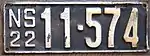 1922 Embossed white serial on black plate with border line; "NS 22" at left 12-345 1-001 to approximately 15-500