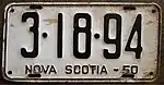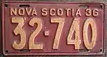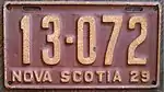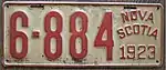 The Canadian province of Nova Scotia first required its residents to register their motor vehicles in 1907. Registrants provided their own licence plates for display until 1918, when the province began to issue plates.[1]