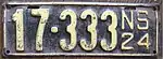 1924 Embossed yellow serial on black plate with border line; "NS 24" at right 12-345 1-001 to approximately 19-000
