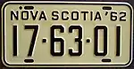 1962–63 Embossed black serial on light yellow plate with border line; "NOVA SCOTIA '62" at top none 1-23-45