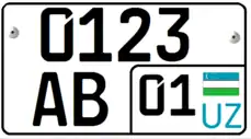 Vehicle registration plates of Uzbekistan started in 1996. The current version started in 2009.