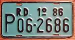 1st period 1988 plate validated by a blue on red sticker | None | |||
