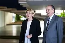 In 2017, Attorney General Luisa Ortega Díaz denounced the rupture of democracy in Venezuela when the Venezuelan Supreme Court, in a move both nationally and internationally considered a power grab, assumed powers constitutionally attributed to the National Assembly.[26] The Supreme Court barred her from leaving the country and froze her assets, due to alleged "serious misconduct" in office,[27] and she was dismissed as Prosecutor General by the newly established National Constitutional Assembly.[28] Tarek William Saab, the replacement Chief Prosecutor appointed by the Constituent Assembly, claimed that she and her husband, German Ferrer, operated an extortion group and a day later, the Constituent Assembly ordered their arrest. Ferrer said the charges are political in nature.[29] Ortega and Ferrer left Venezuela, with Ortega stating that the Maduro government would "deprive me of my life".[30] Maduro has said he is seeking an international arrest warrant for both her and her husband, claiming they had been involved in serious crimes.[31]