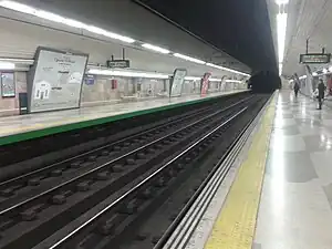 Ventilla [benˈtiʝa] is a station on Line 9 of the Madrid Metro, serving the Almenara barrio, commonly known as La Ventilla. It is located in fare Zone A.[1]
