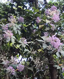 Vernonia arborea is a species of mid-level rainforest tree in the Composite, or Daisy family Asteraceae that is found in Western Ghats of India and Sri Lanka[2] and is also widespread in the East Indies. This tree, and Brachylaena are contenders for the tallest of all composite trees ("daisy trees") with the variety V. a. pilifera (called Maremboeng) of Sumatra reaching a height of 117 feet (36 meters). Another variety, V. a. javanica of Java (called Semboeng Kebo) almost as tall (111 feet, or 34 meters) is up to 3 ft 5 in (104 centimeters) thick, the most massive of all composites.[3] Its leaves contain a useful fungicide.[4]