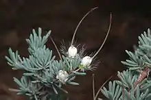 Blue spruce verticordia is readily propagated from cuttings and can be grown in a range of soils, although it is slow growing and more open when grown in sand. Established plants are both frost and drought-hardy but can become straggly if not pruned. The flowers are insignificant except at close range and the bluish foliage is described as "attractive".[2][7]