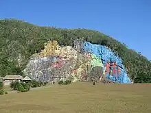 Viñales Valley (Spanish: Valle de Viñales) is a karstic depression in Cuba. The valley has an area of 132 km2 (51 sq mi) and is located in the Sierra de los Órganos mountains (part of Guaniguanico range), just north of Viñales in the Pinar del Río Province. In 1999, the valley was inscribed as a UNESCO World Heritage Site as a natural and cultural landscape because of its use of traditional tobacco-growing techniques.[1]