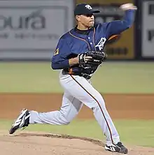 ![]() Darensbourg pitching for the St. George Roadrunners in 2009 | |