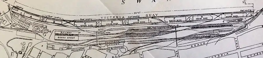 During the 1950s, Customs and Police offices[9] were located on the border of the quay and the railway marshalling yard.[10] The structure on Victoria Quay now called the Old Police Station was known between 1906 and 1966 as the Immigration Buildings.[11]