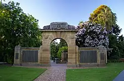 Victory Memorial Gardens are located on the banks of the Wollundry Lagoon in the central business district of Wagga Wagga New South Wales, Australia. The 2.02 hectares (5.0 acres) of land were formerly the site of the Old Police Barracks and Police Paddock, where all of the police horses were kept.[2] It became land for public recreation in February 1931.[3] In 1925 the Wagga Wagga Municipality Council planned a tribute to those who fought and died in the First World War. The Council and Returned Sailors, Soldiers Imperial League of Australia (RSSILA) originally planned a memorial hall to be added onto the council chambers but public preference was for gardens.[4] There was a public competition for the design which was won by Thomas Kerr who was the chief landscape gardener of the Royal Botanic Gardens in Sydney.[2] Work on the gardens started in 1928.[3]