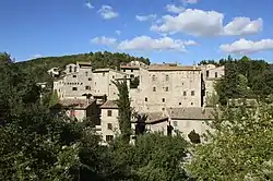 Viepri, is an Italian village in the Colli Martani of central Umbria, a frazione of Massa Martana, 7 km north of that town and another 7 km SSW of Bastardo. It has about 200 inhabitants. One of the more attractive medieval villages of Umbria, in part because of the almost exclusive use of stone in its construction, it was a fortified outpost much contested by Todi and Foligno during the Middle Ages. It is chiefly known today for the Romanesque abbey of Santa Maria in Viepri, but another medieval church, remains of its walls, and two gates also subsist.