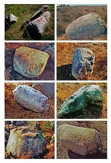 - sets of semi-ellipses that organize around a cord at the top of the menhir (see photo). Its meaning is unknown