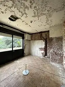 The Cavrois resided in the villa until the death of Lucie Cavrois in 1985: in the same year the sons sold the furniture of the villa in an auction. In 1987 the villa was sold to a real estate company who wanted to demolish it and divide the land into plots.[1] However, the villa was abandoned and quickly looted, ransacked and occupied by squatters. In 1990, the property and grounds were classified as an historic monument by decree of the Conseil d'État. That same year saw the birth of an association to protect and preserve the house. Since its inception the association has lobbied the state authorities concerning the fate of the villa.[1] The French State, through its Ministry of Culture, purchased the building in 2001, and, in 2004, restoration work commenced on the exterior and the reinstatement of the internal features.