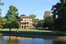 Villa Smeraldi is a rural palace, now museum, along the Canale Navile near the town of Bentivoglio in the Province of Bologna, in the region of Emilia-Romagna of Italy. The villa is the host of the Museum of Peasant Farming Culture (in Italian: Museo della civiltà contadina), which documents the buildings, tools, routines, and daily lives of those involved in rural agriculture from landowner to peasant.