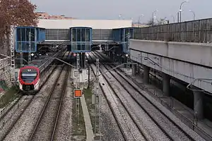 It should not be confused with the homonymous station of Madrid Metro, as there is no direct access between the two stations.