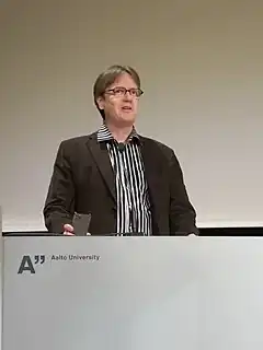 ![]() Prof. Ville Pulkki speaking at Aalto University in 2023. | |