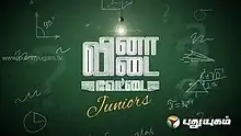 Vina Vidai Vettai Juniors (Tamil: வினா விடை வேட்டை ஜூனியர்ஸ்) (transl. Question, Answer, Hunt) is a 2014 Indian Tamil-language quiz show. It was broadcast on Puthuyugam TV from 16 March 2014 to 15 June 2014. It tests knowledge of Indian culture, sports, politics, history and current affairs. The show was hosted by actress Kasthuri.[1][2]