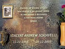 Schiavelli died of lung cancer on December 26, 2005, at the age of 57 at his home in Polizzi Generosa, the Sicilian town where his grandfather Andrea Coco was born, and about which he wrote in his 2002 book Many Beautiful Things: Stories and Recipes from Polizzi Generosa (ISBN 0-7432-1528-1).[6] He was buried at Polizzi Generosa Cemetery near Palermo, Sicily.