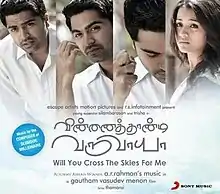 Vinnaithaandi Varuvaayaa is the soundtrack of the 2010 Tamil romance film of the same name, directed by Gautham Vasudev Menon. The soundtrack album and background score were composed by A. R. Rahman, collaborating with Menon for the first time.[1] The lyrics for the songs were penned by Menon's usual associate, Thamarai along with Kalyani Menon and Kaithapram, the latter penning the Malayalam lyrics in the album. The album was released on 25 December 2009 in London with several film personalities participating at the grand function. It was the first time that a Tamil film audio release was held in London.[2] It was followed by an audio launch function which was also held in Chennai on 6 January 2010.[2] Sony Music released the album worldwide.[3] The album opened to critical acclaim from music critics.[4] The audio was marked as #1 in Asia, in terms of advance bookings.[5] The album was ranked among the best musicals of 2010.[6] A collector's edition of the film was released on 1 December 2010, which featured two unreleased tracks. The same soundtrack album was reused in the simultaneous Telugu version Ye Maaya Chesave (2010) and its Hindi remake Ekk Deewana Tha (2012).