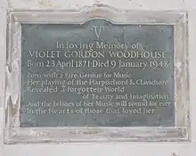 Violet Gordon-Woodhouse (23 April 1872  9 January 1948) was a British keyboard player. She specialised in the harpsichord and clavichord, and was influential in bringing both instruments back into fashion. She was the first person to record the harpsichord, and the first to broadcast harpsichord music.[1]