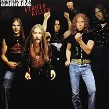 Virgin Killer is the fourth studio album by the German rock band Scorpions. It was released in 1976 and was the band's first album to attract attention outside Europe.[3] The title is described as being a reference to time as the killer of innocence.[4] The original cover featured a nude prepubescent girl, which stirred controversy in the United Kingdom, the United States, and elsewhere. As a result, the album was re-issued with a different cover in some countries.