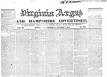 8. 1 2 3 4 5 6 7 "About Virginia Argus and Hampshire Advertiser, 1850–1861". Chronicling America. Library of Congress, National Endowment for the Humanities. OCLC 11111337. Archived from the original on October 8, 2015. Retrieved December 6, 2013.