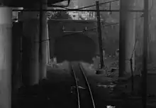 Initially the tunnel served both freight and passenger service until Union Station's opening in 1908, and since that time it has been freight-only.[5] The tunnel's second track was removed in 1936 to accommodate electrification and increasingly large railroad equipment.[6]