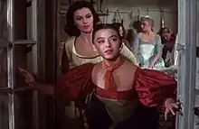 A European stage tour of Oklahoma! (headlined by Shirley Jones and Jack Cassidy)[4] followed in the summer of 1955 with stops in Paris, Rome, and London, and the film opened in its first-run Todd-AO 70mm engagements in October. Virginia returned to the role of Jean MacLaren for several revivals of Brigadoon, most notably at New York City Center in 1957 and 1963. She also appeared in the live “Producers’ Showcase” NBC broadcasts of Bloomer Girl and Jack and the Beanstalk in 1956.