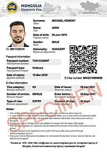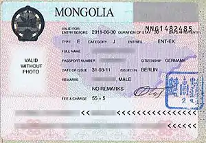 - ↑ "General visa information". Consul.mn. Ministry of Foreign Affairs of Mongolia – Consular Department. 11 April 2022.