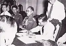 Prince Vivadhanajaya signing the Anglo-Thai Peace Treaty in 1946