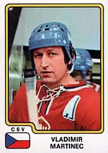 Vladimír Martinec (born December 22, 1949) is a Czech former ice hockey player. He played as a right winger during the 1970s and early 1980s, and won the Golden Hockey Stick award as top player in Czechoslovakia four times, in 1973, 1975, 1976, and 1979. Internationally, he played for the Czechoslovakia men's national ice hockey team, and was inducted into the IIHF Hall of Fame in 2001.